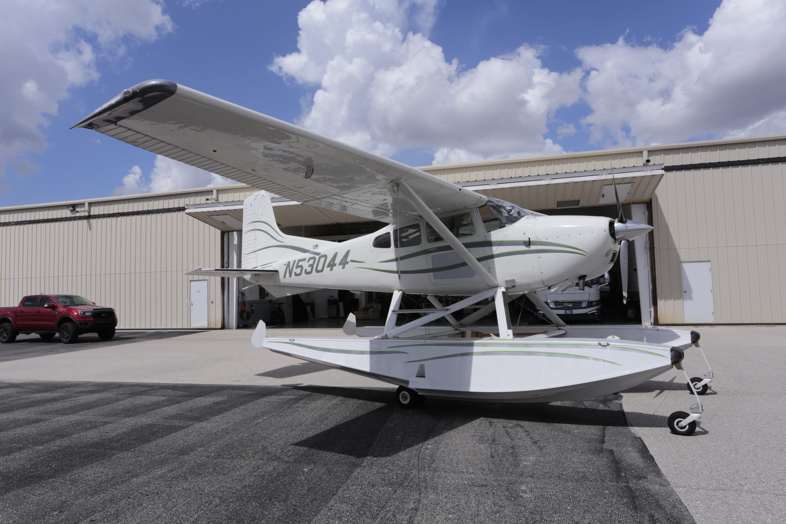 Rare opportunity to own an incredibly low-time, 2-owner Skywagon with beautifully upgraded panel and interior. No accident history. This unicorn was purchased brand-new by a renowned doctor, who modified it in 1975 (including a new all-white paint scheme) for volunteer medical work but never put the airplane to work for that purpose. N53044 has since been impeccably updated by its current owner with a custom avionics suite featuring the latest and greatest Garmin avionics, including G500 TXi touchscreen primary flight display with engine indicating system. Garmin GTN 750 Xi touchscreen GPS/nav/comm, Garmin GFC 500 autopilot w/ SmartGlide, Garmin GTX 345 remote ADS-B In/Out transponder, Garmin Flightstream 510 for wirelessly sending flight plans, and so much more. Beautifully updated interior features woven vinyl flooring, coordinating sidewalls, and charcoal & light gray seating with diamond quilting across all four seats. N53044 is currently on Wipline 3730 amphibious floats. Landplane gear is also included. Don’t miss this chance to be the next custodian of this amazing example of Cessna’s legendary 185 Skywagon!