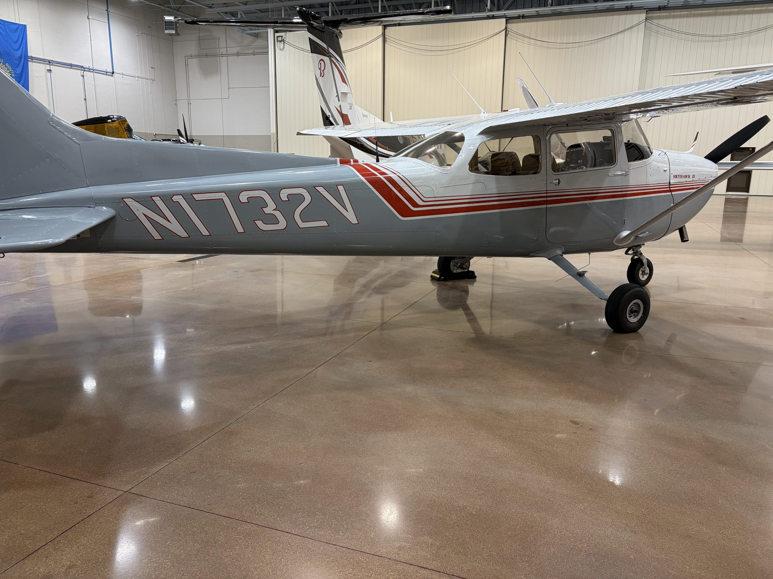Nicely upgraded 180 hp Penn Yan Superhawk 172 with gross weight increase to 2,550 lbs. and useful load 1,000+ lbs. TTAF 8,367 with 677 SMOH on O-360-A4M. Panel investments include a Garmin GTN 650 GPS/nav/comm, Garmin G5 attitude indicator, Garmin GTX 345 ADS-B In/Out transponder, JPI engine analyzer, and JPI fuel flow. Additional upgrades include Stene Aviation’s Sportsman STOL leading edge cuff, LED exterior lighting, USB outlet, and 406 MHz ELT. N1732V was delivered to Embry-Riddle in 1974 and served there for five years and 5,000 hrs. before becoming a Midwestern airplane in the early 1980s. The airplane more recently did aerial survey work and is equipped with camera ports. Original paint rated 7/10 with good gloss. Original interior with shoulder harnesses. March 2025 annual, June 2024 IFR certs.