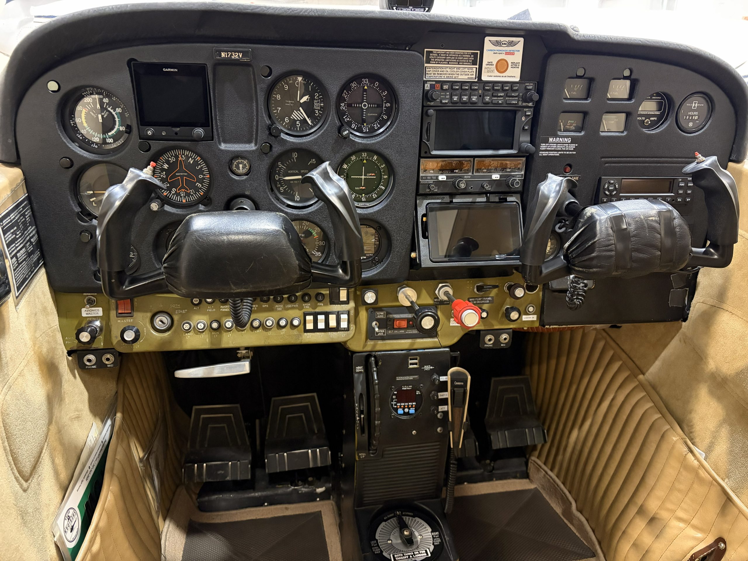 Nicely upgraded 180 hp Penn Yan Superhawk 172 with gross weight increase to 2,550 lbs. and useful load 1,000+ lbs. TTAF 8,367 with 677 SMOH on O-360-A4M. Panel investments include a Garmin GTN 650 GPS/nav/comm, Garmin G5 attitude indicator, Garmin GTX 345 ADS-B In/Out transponder, JPI engine analyzer, and JPI fuel flow. Additional upgrades include Stene Aviation’s Sportsman STOL leading edge cuff, LED exterior lighting, USB outlet, and 406 MHz ELT. N1732V was delivered to Embry-Riddle in 1974 and served there for five years and 5,000 hrs. before becoming a Midwestern airplane in the early 1980s. The airplane more recently did aerial survey work and is equipped with camera ports. Original paint rated 7/10 with good gloss. Original interior with shoulder harnesses. March 2025 annual, June 2024 IFR certs.