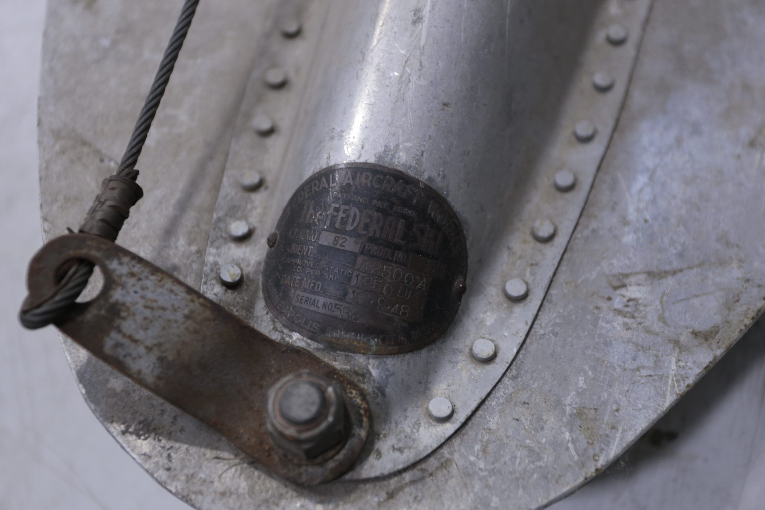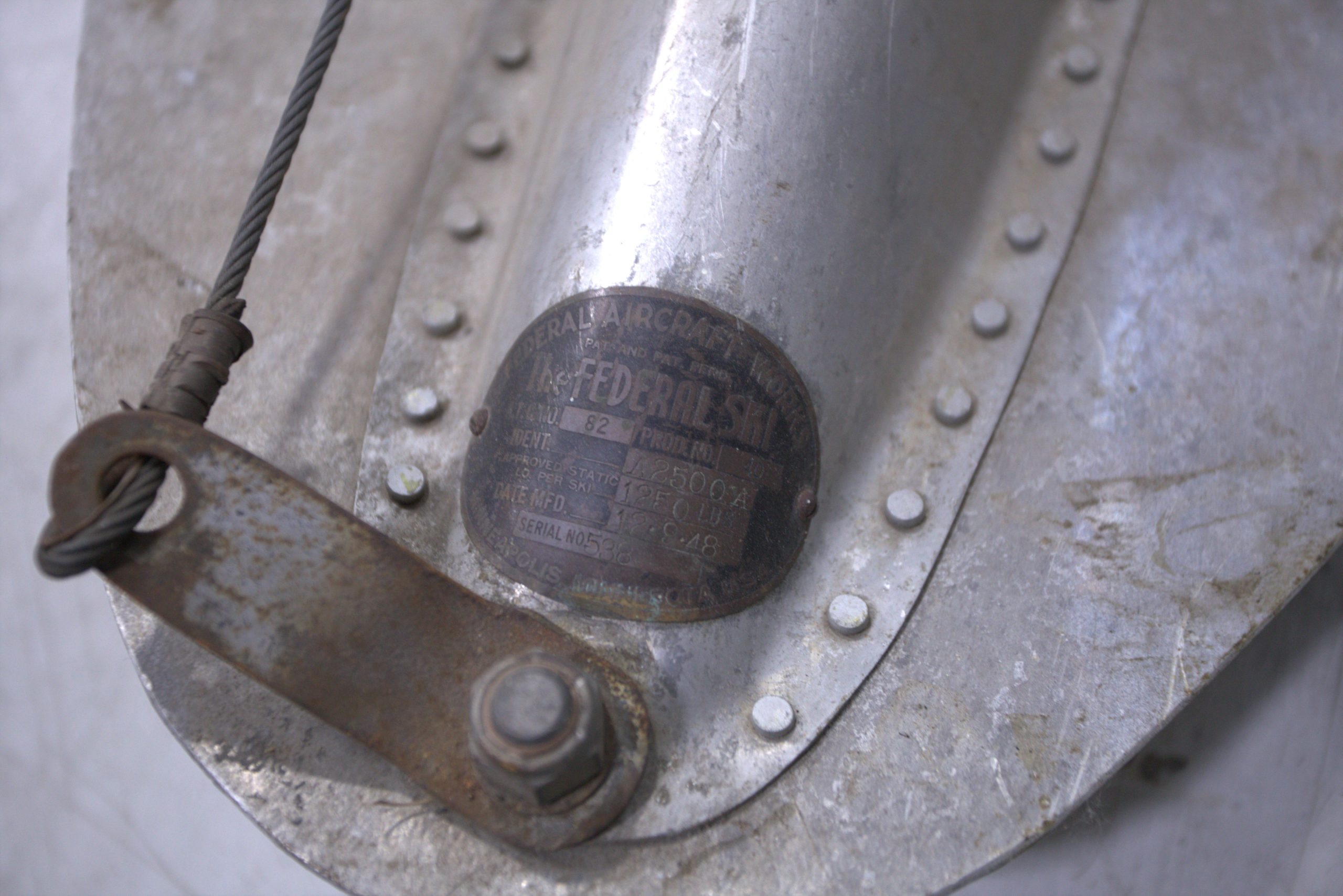 Federal A2500A skis, manufactured 12/1948. Rigging unknown. Includes tailski (model unknown). May fit Aeronca Sedan, Cessna 170 series, Cessna 172. Photos available via email. Asking $2,500.